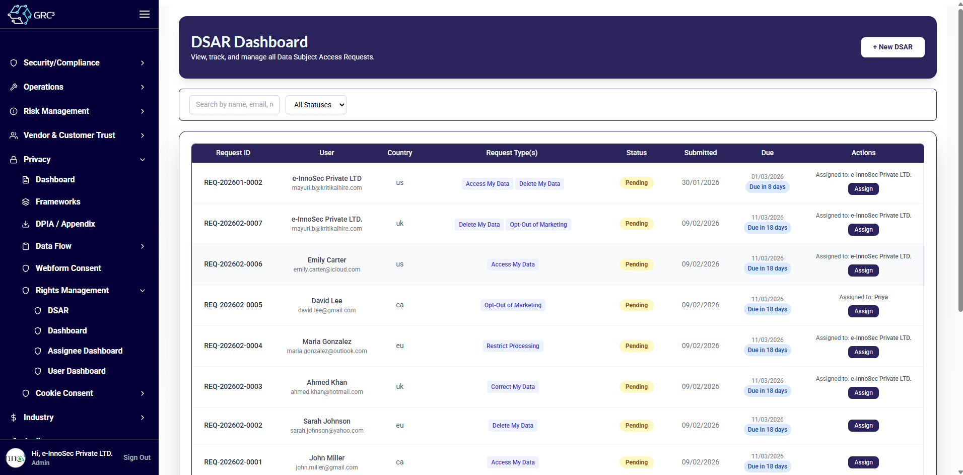 Track, assign, and manage DSAR requests across teams with complete visibility